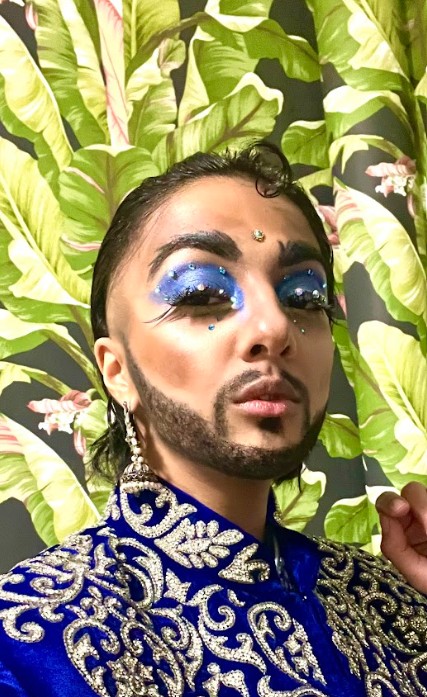 Twinka Masala (they) is an award-winning drag king and activist based in Chicago, performing nationwide. They served three years on the board of Satrang, a South Asian LGBTQ+ organization in LA and now organizes with Chicago Dyke March. They host South Asian and Middle Eastern drag shows and facilitate drag workshops and story times.