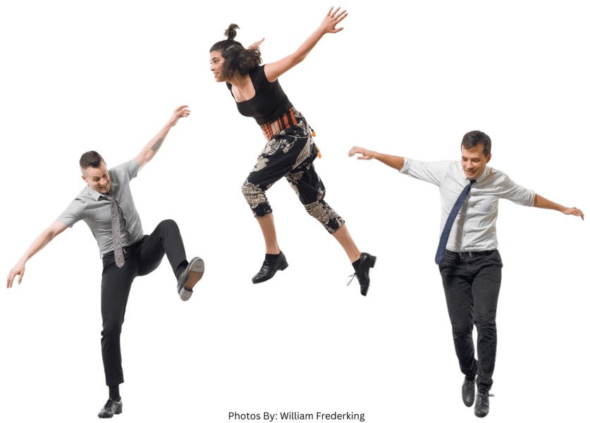 Megan Davis, Martin Bronson, and Tristan Bruns are leaders in the Chicago tap community. Martin, a former director for Chicago Human Rhythm Project, creates acclaimed educational works. Tristan directs Tapman Productions, performing internationally from Spain to China. Megan, a Tapestry Dance Company alum, innovates with M.A.D.D. Rhythms and Queer Dance Freakout. Together, these choreographers and educators blend tradition with modern artistry to push the boundaries of percussive dance.